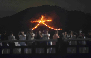 ![]() | 夜空を照らす「大」文字 京都で五山送り火 京都の夏の風物詩「五山送り火」が16日夜、京都市街を取り巻く山々で行われた。 京都府警によると、鴨川沿いや嵐山などには約2万6000人の見物客が訪れた。 (出典:時事通信) |