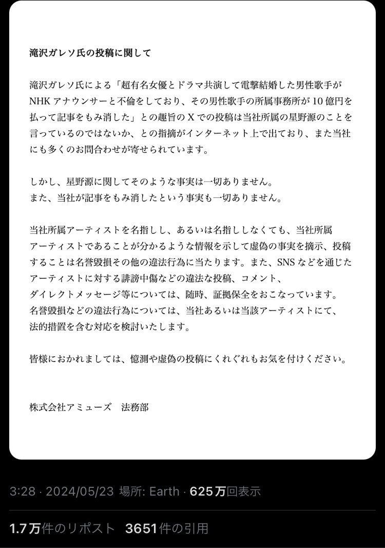 — 滝沢ガレソ🪄 (@tkzwgrs) May 22, 2024