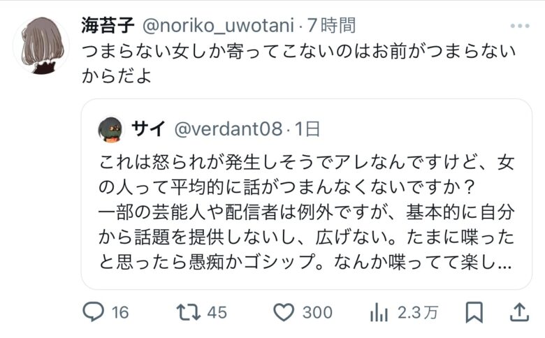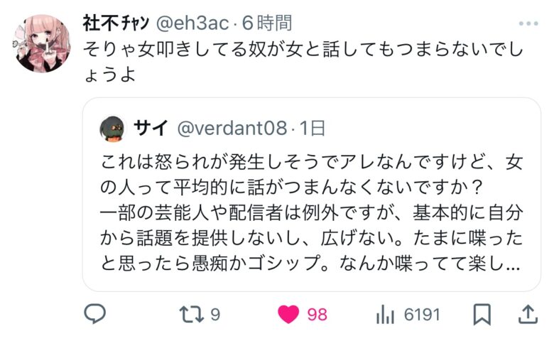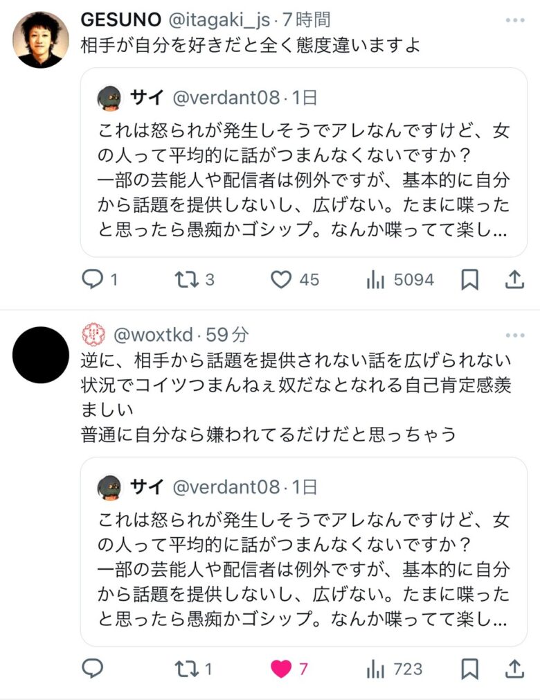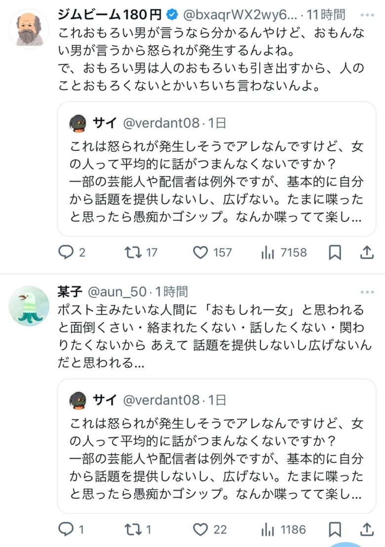 ワイ陰、女の子と話してるだけで楽しいから会話の内容きにしたことない