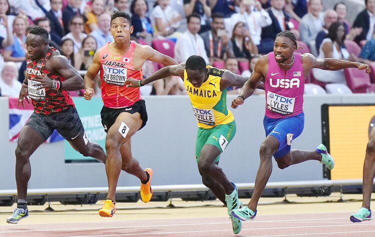 ![]() | ゴールするサニブラウン 世界陸上 男子100メートル準決勝、ゴールするサニブラウン・ハキーム(右)=20日、ブダペスト (出典:時事通信) |