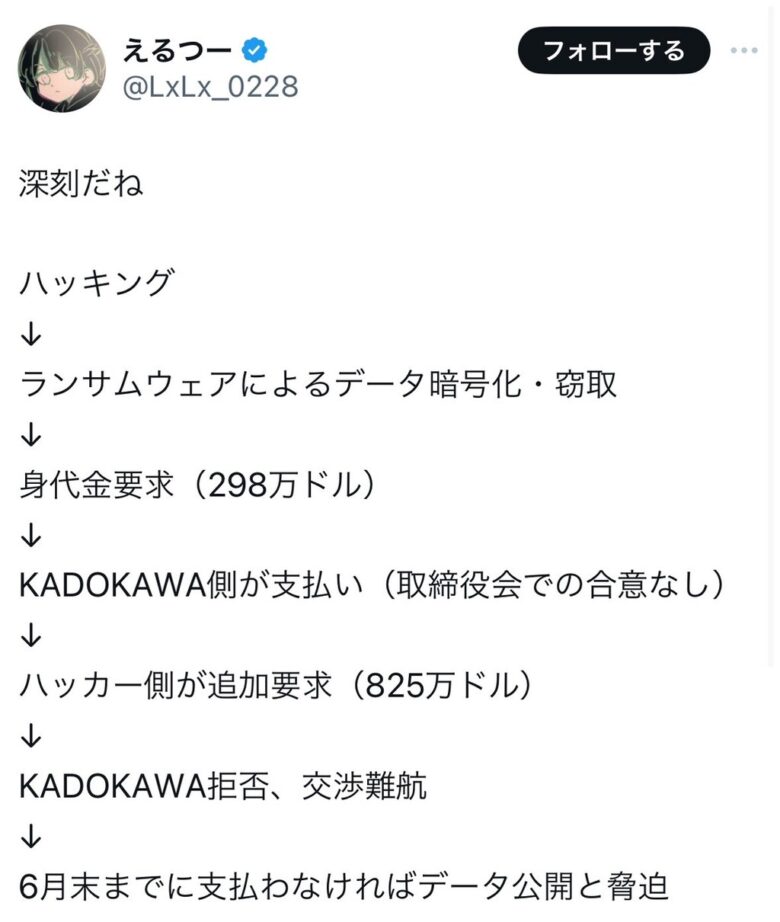 ニコニコの動画なんてどうでもよくてKADOKAWAのサーバにあった各種のコンテンツ資産がヤバいんだろ