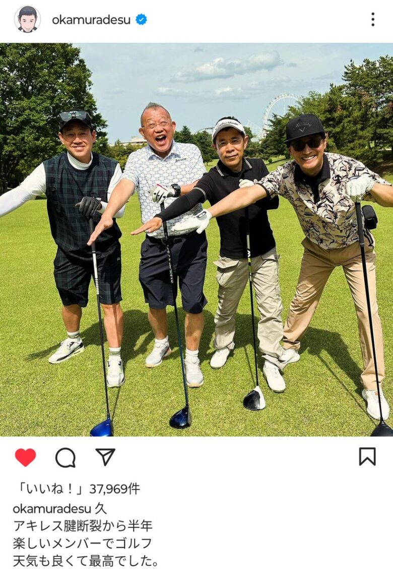 お笑いコンビ・ナインティナインの岡村隆史(53)が28日、自身のインスタグラムを更新。親交の深いタレント・中居正広(51)ら豪華メンバーとゴルフを楽しむプライベートショットを公開した。
