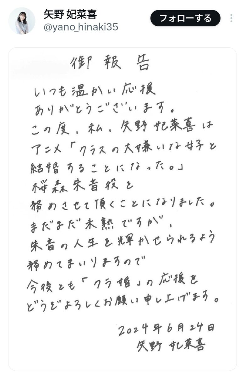 是非ゲットして、新作アニメーションの感想もぜひ聞かせてくださいねー!!✨#虹ヶ咲 https://t.co/lCvk0cgunA— 矢野 妃菜喜 (@yano_hinaki35) June 26, 2024