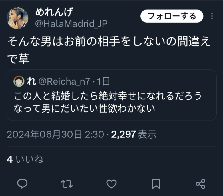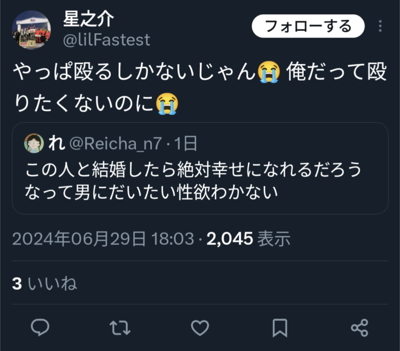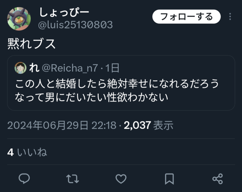 常日頃選ばれない幸せに出来なさそうな奴が発狂してどうすんの