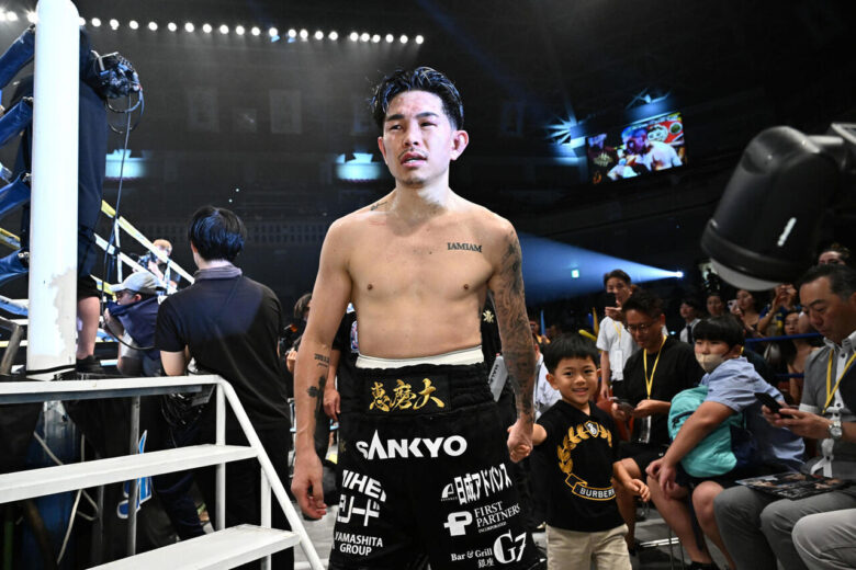 マルティネスとの統一戦に敗れた井岡は息子と共に会場を後にする