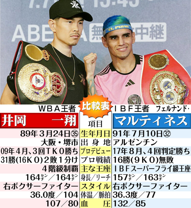 WBAスーパーフライ級王者の井岡一翔(志成)が7月7日、東京・ 両国国技館でIBF同級王者のフェルナンド・マルティネス(アルゼンチン)との