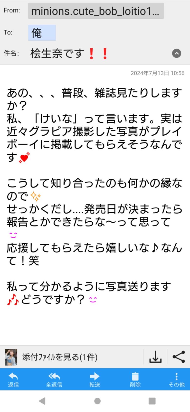 最初は詐欺メールかと思ったんやけど写真付きなら間違いない