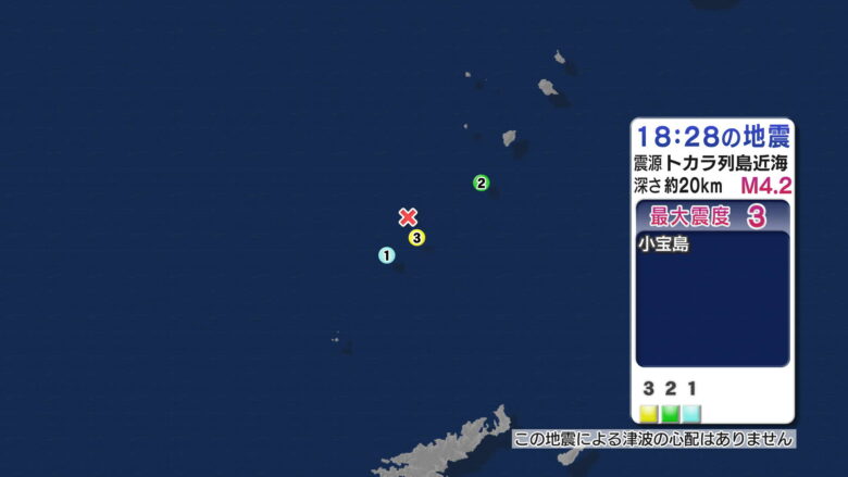 ![]() | 十島村・小宝島で震度3 トカラ列島近海震源の有感地震が9日計136回 鹿児島 …配はありません。 トカラ列島近海では、9日は午後7時までにあわせて136回の地震を観測しています。 9日午後6時28分ごろトカラ列島近海を震源地とする地震がありました。 (出典:MBC南日本放送) |