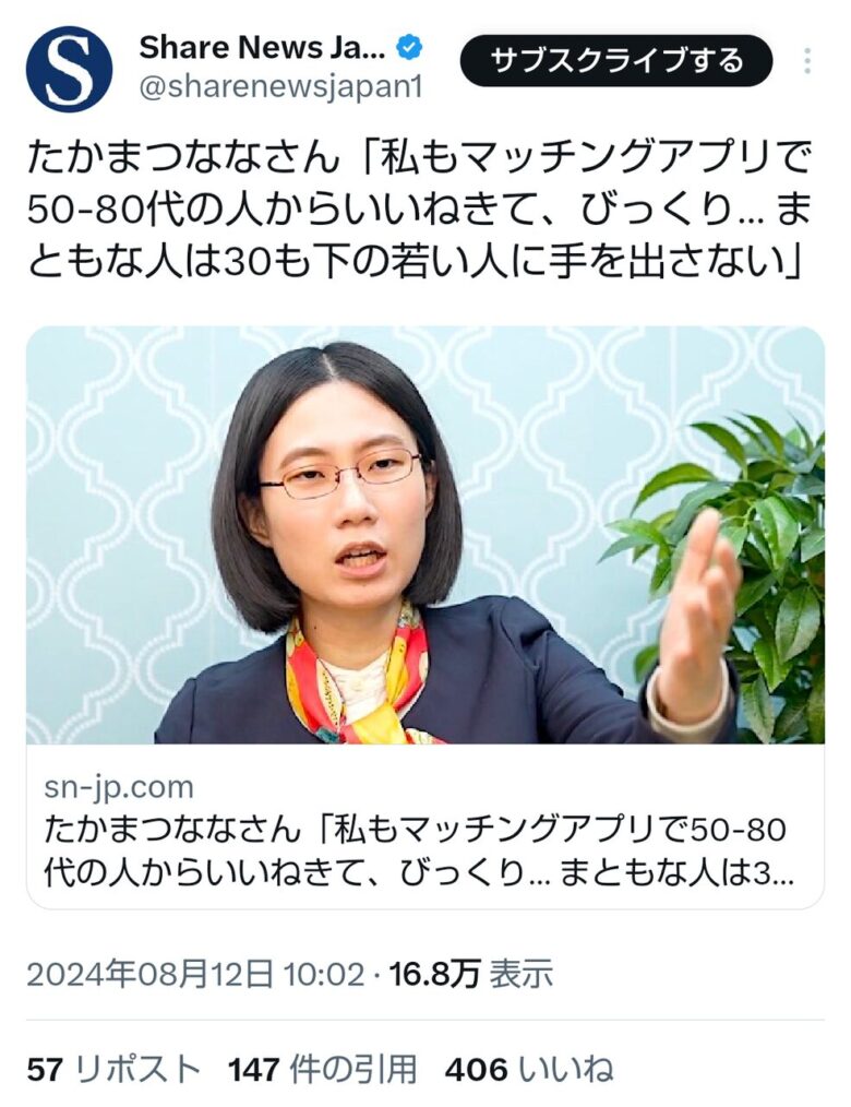 — たかまつなな/笑下村塾 代表 (@nanatakamatsu) August 8, 2024