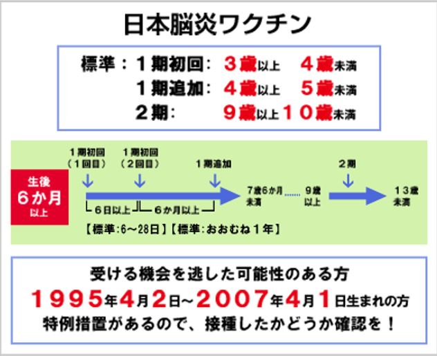 @utbuffett日本脳炎ワクチン、打っているつもりでも意外と打っていない可能性があるみたいなので気をつけて! 以下、お医者さんからのコメント 1995(平成7)年4月2日-2007(平成19)年4月1日生まれとかだと打ってない可能性あり。 接種推奨時期がワクチン接種の積極的勧奨差し控え期間に重なってるため。 pic.twitter.com/jBreFs1bjb