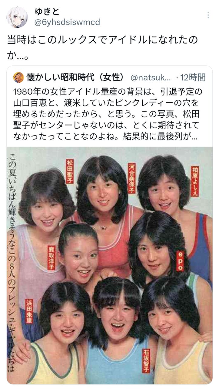 当時はこのルックスでアイドルになれたのか…。 https://t.co/KjSUU8hlr0