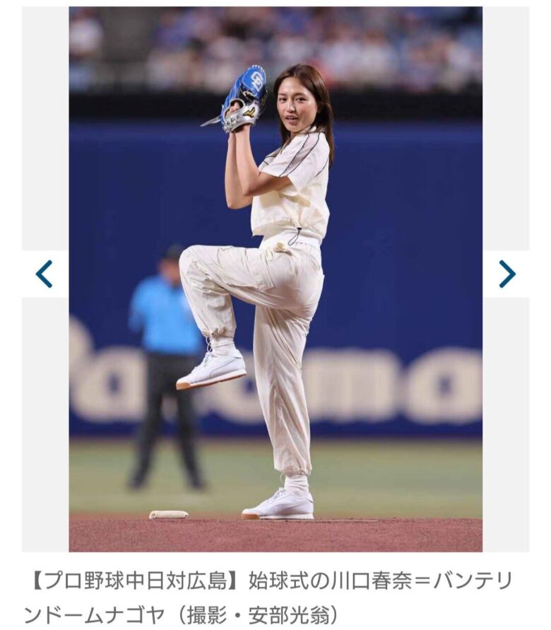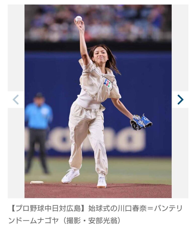 国民的女優・川口春奈がサプライズで始球式に登場 バンテリンドームがどよめく