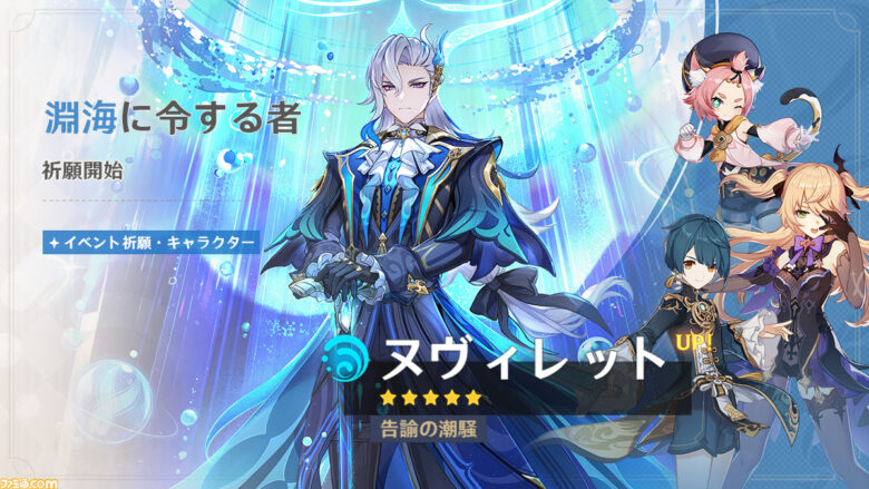 ![]() | 『原神』Ver.4.1で「★5 ヌヴィレット」「★5 リオセスリ」新実装!“ビーム”と“拳”で戦う独特のバトルモーション …います。ヌヴィレットは重撃をメインに戦うキャラで、重撃チャージによって水元素のビームを発射します。 祈願スケージュールは、前期で「ヌヴィレット」に加えて「★5… (出典:インサイド) |