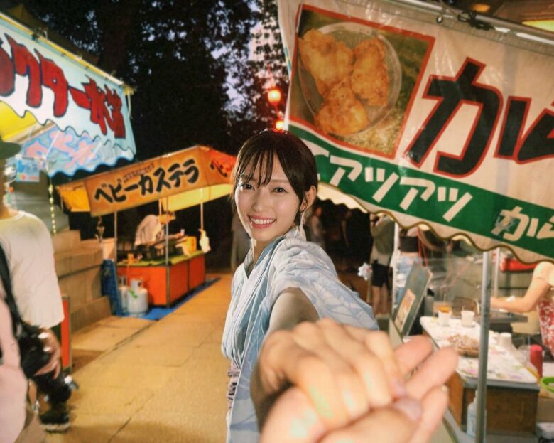お祭りデートを思わせる浴衣姿の記念ショットに、ファンからは「真帆ちゃん惚れてまうやろ」「浴衣の真