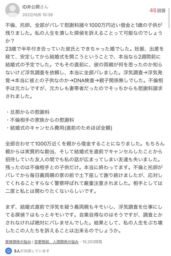 permalink:【悲報】不倫、托卵、全部バレて1000万円の借金と1歳の子供が残りました