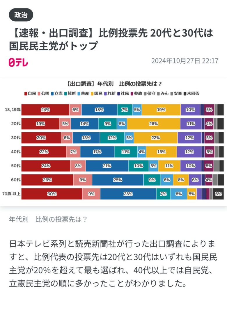 ジジババは保守的でどうせ投票先変えないだろって高齢化して固定させてたのに本当に見切られたんだな