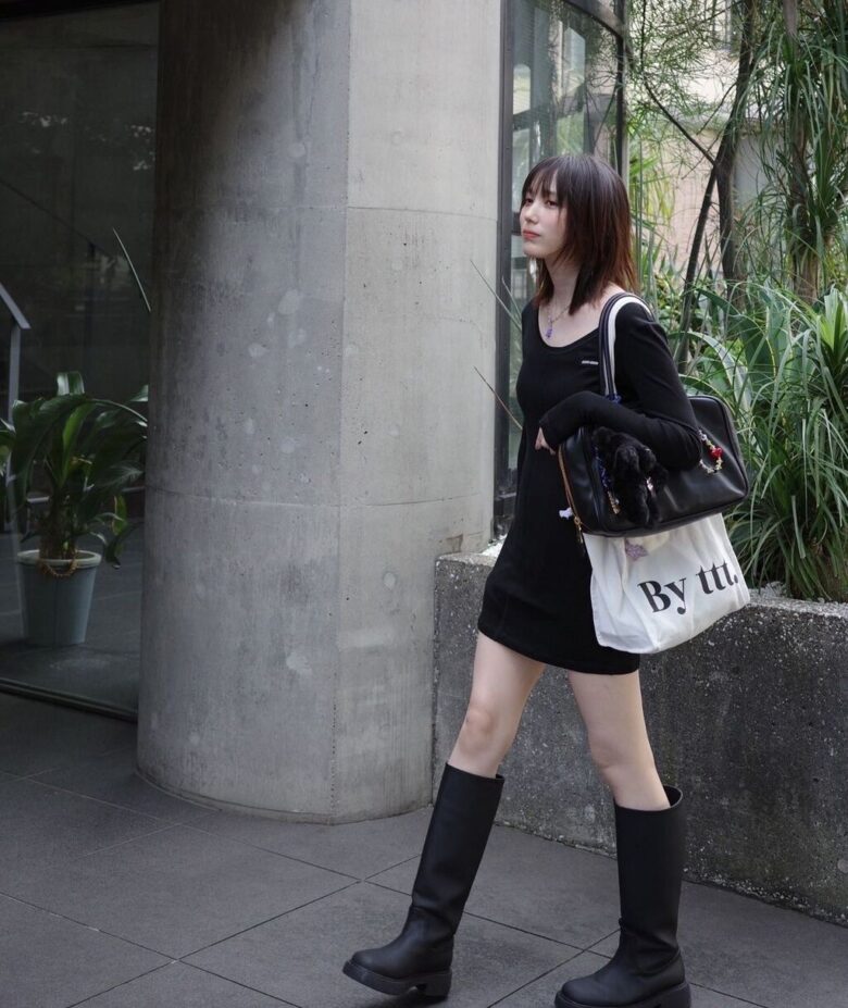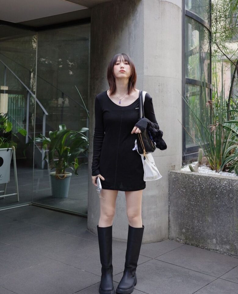 ミニスカート姿の写真とともにつづられた投稿には「黒で統一されたコーデ、より肌の透明感あがって最強です」「黒一色映える白い肌」「肌めっちゃ奇麗ですね」