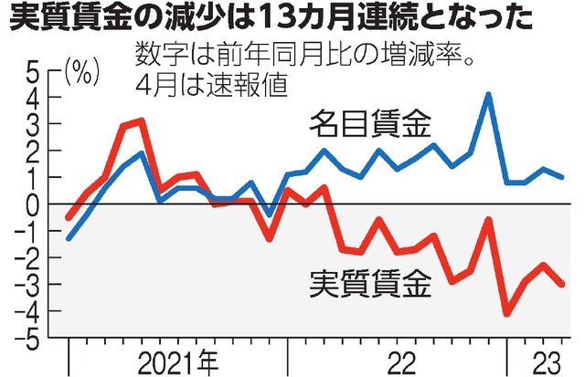 @sazumyyふう、苦しいわけだ…🥹 > 今年4月の「実質賃金」13か月連続で減少 1人あたりの現金給与総額は「28万5176円」賃金上昇も物価上昇には追いつかず news.yahoo.co.jp/articles/2ab4b…