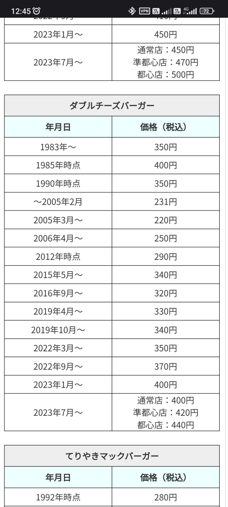 マクドナルドは原材料や経費というより数値遊びしてこれくらいならこのくらい売れるやろ的な値段設定なんよ