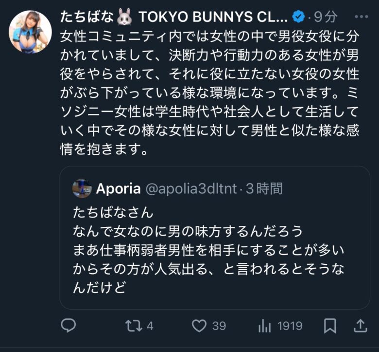 反報性のない伴侶であっても法律婚したからには面倒を見ないといけないので、この様に自分に言い聞かせて必死に耐えているのではないでしょうか。 https://t.co/HndrmnehxM— たちばな🐰 TOKYO BUNNYS CLUB (@banabanasan) January 27, 2025