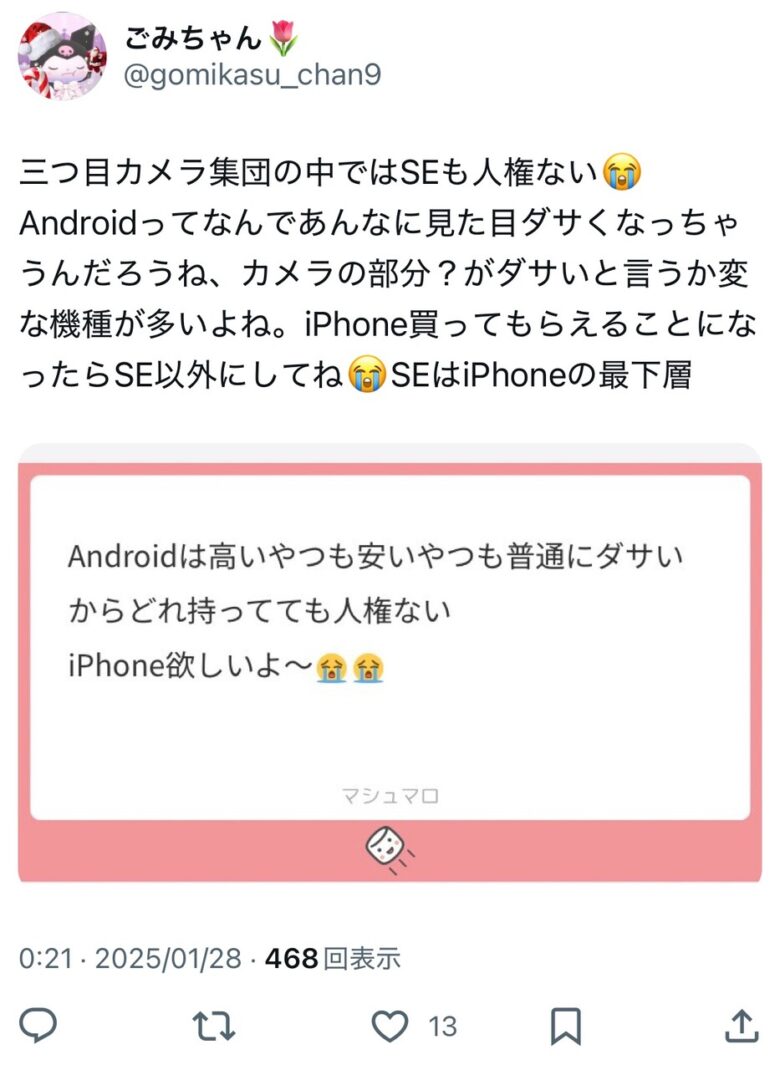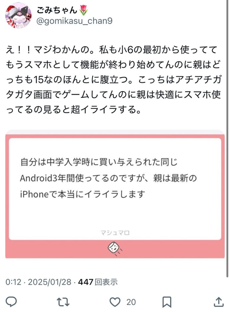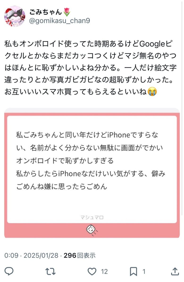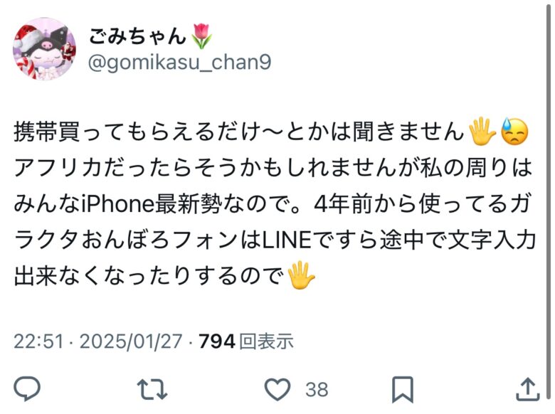 自分だけスマホ古いせいで必要な交流するとき一々恥かくっていうのは普通に可哀想