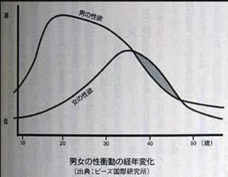 性欲のピークは、男性では20歳前後、女性では35歳から40歳の間と言われています。