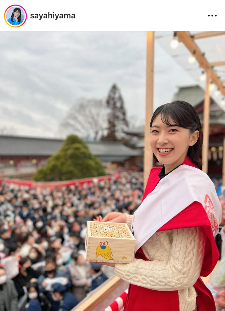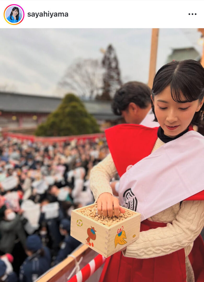 節分祭にゲストとして参加したことを報告した。インスタグラムで「茨城県笠間市 笠間稲荷神社 の節分祭に特別奉仕者としてゲストで参加させていただきました。とっても楽しかったです!人生でこんなに豆まきしたのは初めてです。貴重な機会をありがとうございました 今年も皆様にたくさんの福が訪れますように」とつづると、節分祭の会場で福枡を持ち、豆まきをした際のショットをアップ。