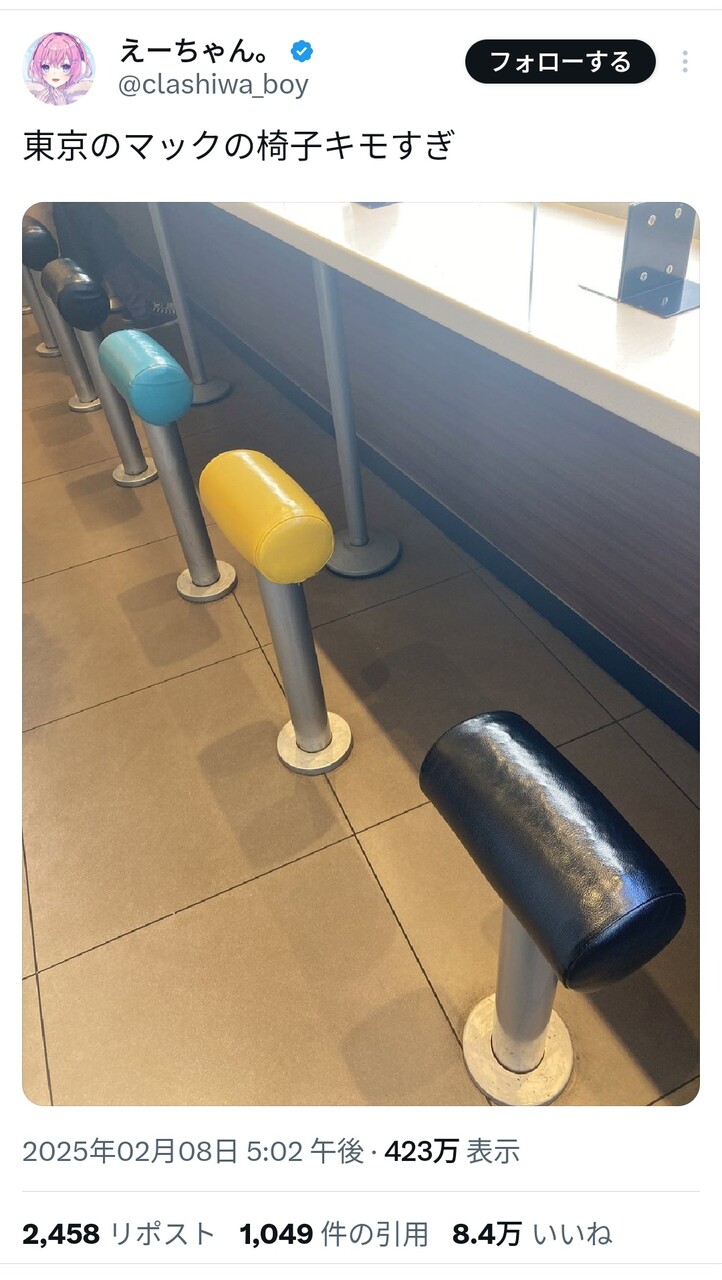 座りづらくて回転率上がるとか