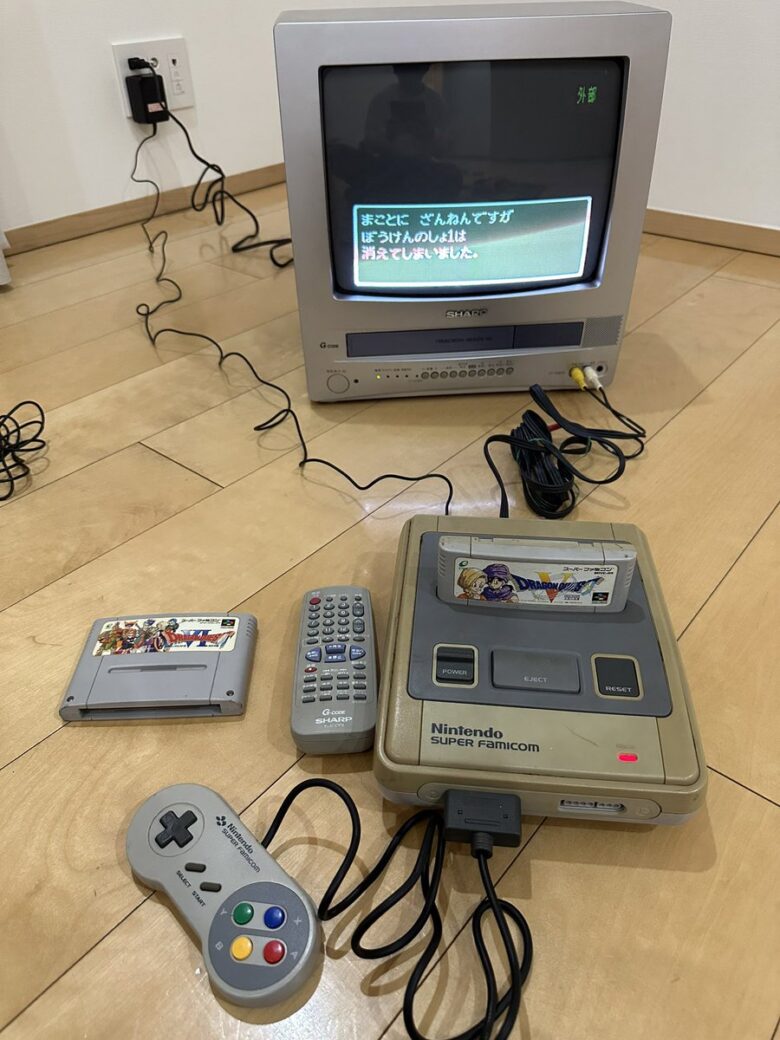 スーパーファミコンにテレビデオ、令和の時代に驚きの家電やゲーム機がそろっている。年季は入っているが、いまもプレイできそうだ。