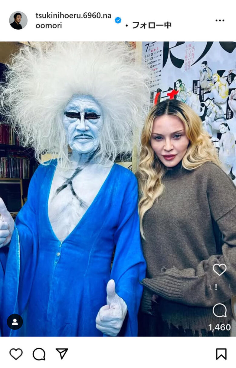 大森は「父親が『年末にマドンナが来てよぉ』って正月そうそう雑な嘘ついてんなぁって思ってたら本当だった」と、暗黒舞踏集団・大駱駝艦を主宰する世界的舞踏家の麿と、米歌手マドンナ(66)のツーショット写真をアップ。「#マドンナ#麿赤兒#大駱駝艦」とハッシュタグを添えた。