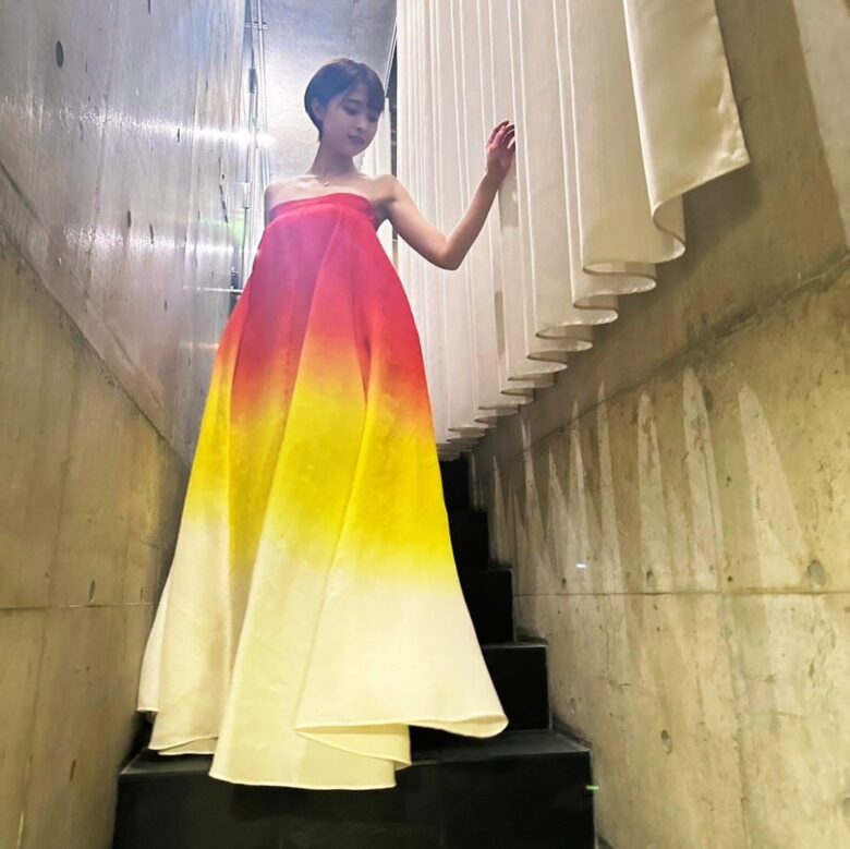 元フジ・渡邊渚さんがデコルテ全開! チューブトップのカラフルドレス姿「エレガント」絶賛