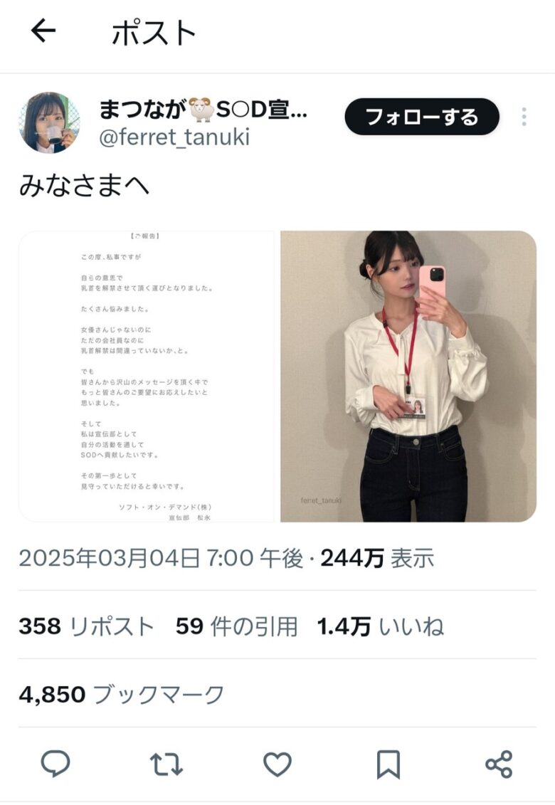 — まつなが🐏S○D宣伝部 (@ferret_tanuki) March 4, 2025