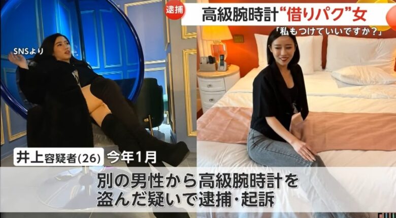 港区で「ロレックス」を盗んだ井上むらさき容疑者が逮捕。マッチングアプリで知り合った男性の時計を盗み、即日売却。その後のSNS豪遊が騒動となっています。