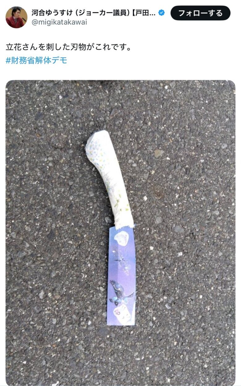 立花さんを刺した刃物がこれです。#財務省解体デモ pic.twitter.com/awtVAZ7jaI