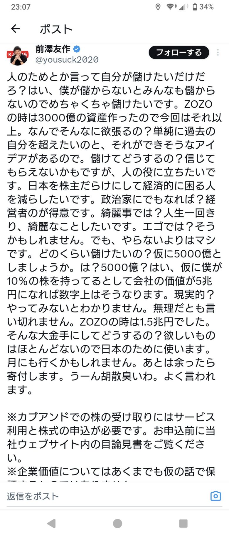 人のためとか言って自分が儲けたいだけだろ?はい、僕が儲からないとみんなも儲からないのでめちゃくちゃ儲けたいです。ZOZOの時は3000億の資産作ったので今回はそれ以上。なんでそんなに欲張るの?単純に過去の自分を超えたいのと、それができそうなアイデアがあるので。儲けてどうするの?信じてもら…