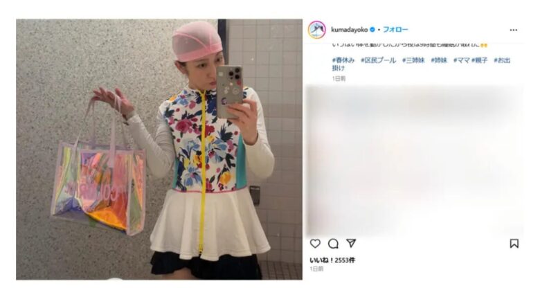 「自撮りだろうが撮影だめでしょ」熊田曜子の“区民プール”投稿が物議 ネットで指摘されたマナー違反