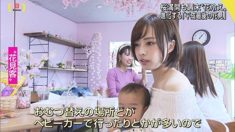 過去にテレビ放送された花見の様子で映った女性が「美人すぎる」とSNSなどで話題に。赤ん坊を抱きながらも上品な雰囲気で、多くの視聴者が一瞬で虜に。