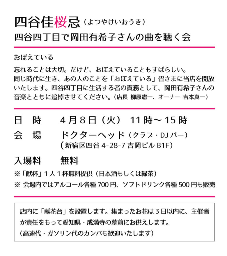 岡田有希子さんの命日「佳桜忌」。1986年の衝撃的な飛び降りから39年、今も多くのファンが四谷に集う。