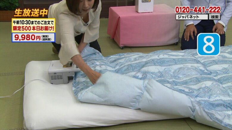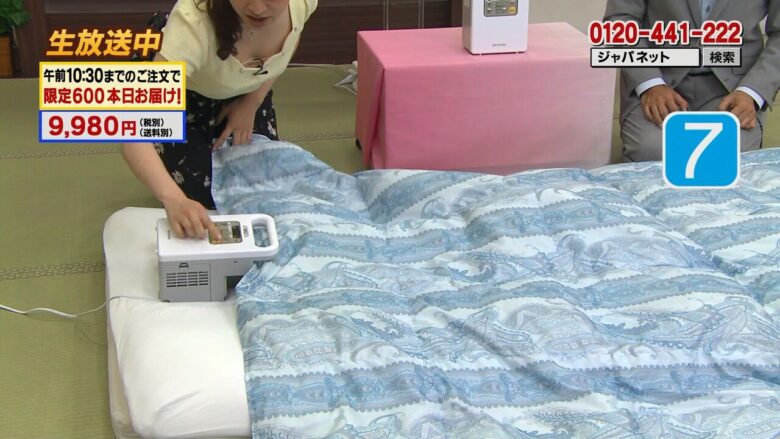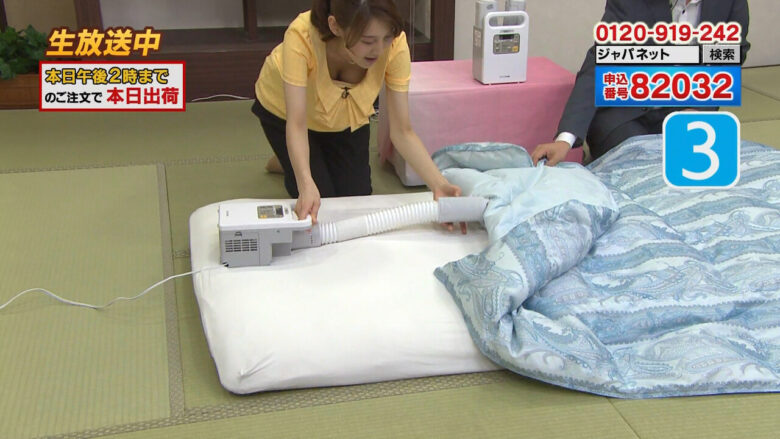 ジャパネットたかたの通販番組中に女性アナウンサーの胸チラ映像が話題に。「ふぅ…」「商品よりチラがメイン」とネット騒然。