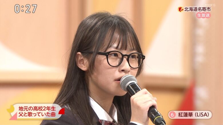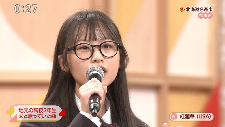 のど自慢に出演したメガネ女子高生が「陰に刺さる」とSNSや掲示板で話題に。表情やスタイル、立ち姿に称賛の声多数。