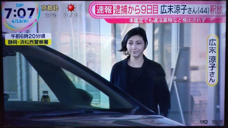 4月8日に傷害の現行犯で逮捕された俳優の広末涼子さんが16日午前5時56分に釈放されました。