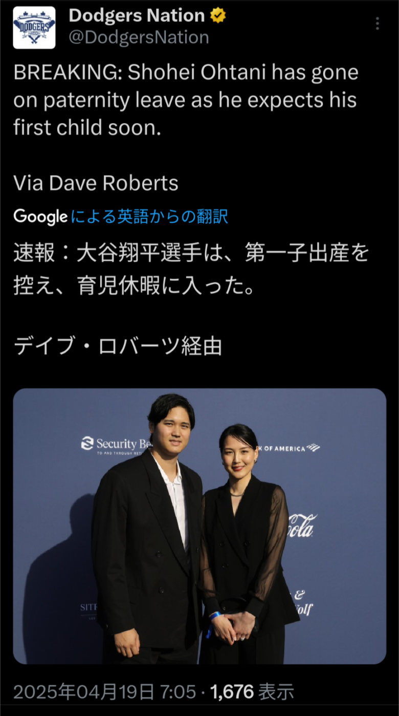 大谷「お前の登板日に合わせて育児休暇取るわ」