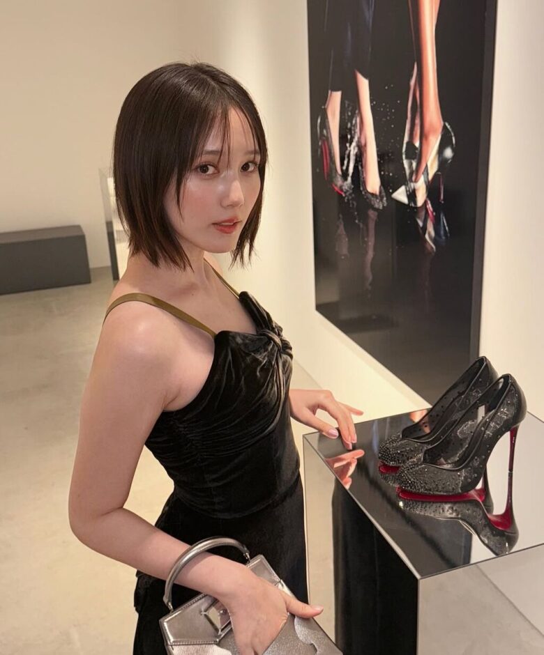 「『クリスチャンルブタン』と『メゾンマルジェラ』の初コラボレーションによるコレクションローンチイベントに行ってきました!」と書き出した上で、シックな黒のキャミワンピ姿を公開。デコルテは全開だった。
