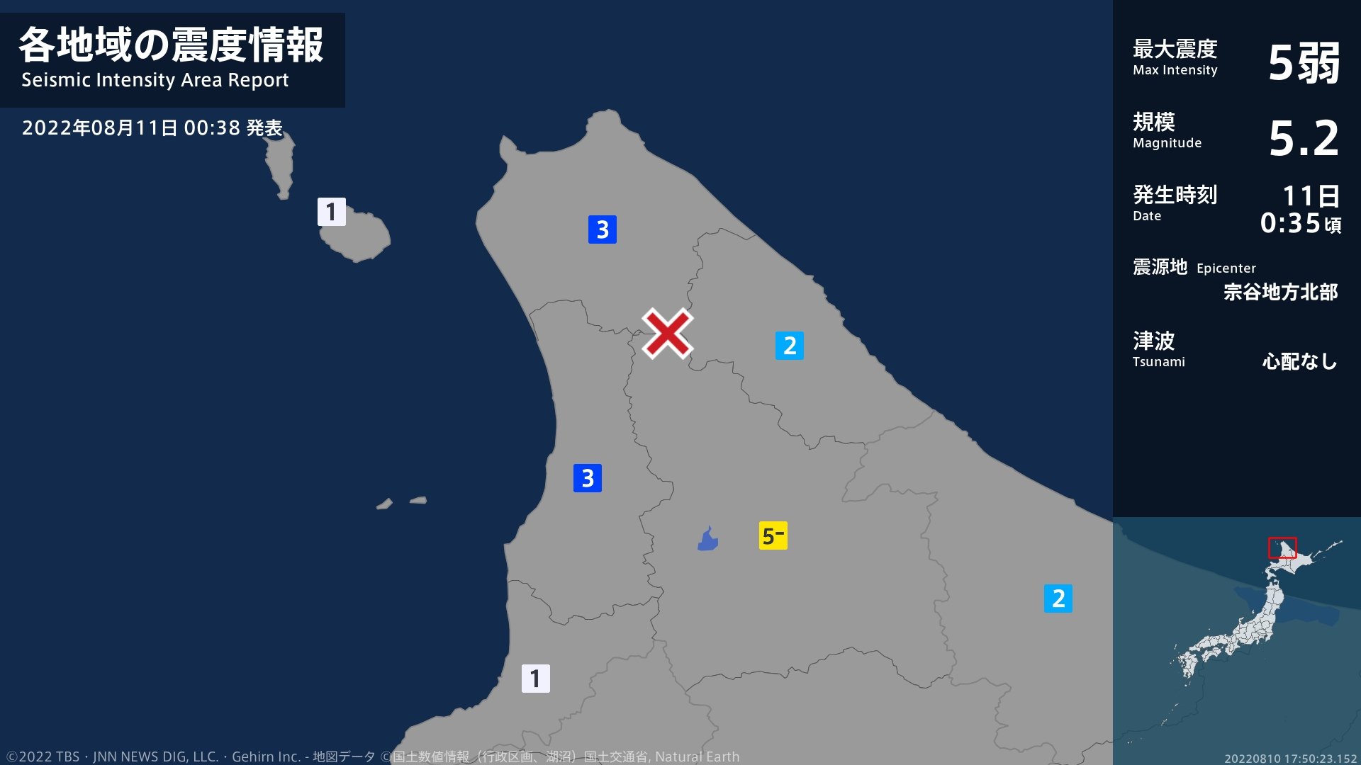 ![]() | 【速報】北海道浦河沖で最大震度5弱の地震 青森県内での被害情報なし …気象庁によりますと、11日午後6時55分ごろ、北海道浦河沖を震源とする最大震度5弱の地震がありました。震源の深さは約140km、地震の規模を示すマグニチュードは6… (出典:ATV青森テレビ) |