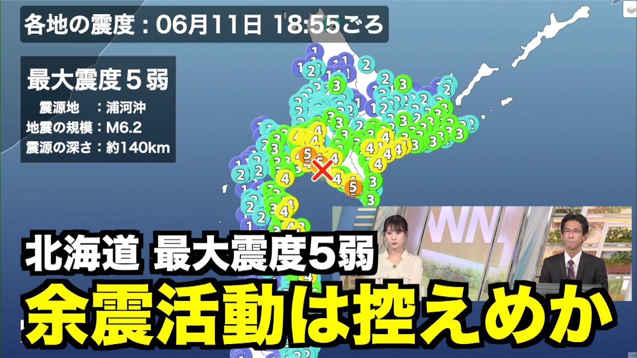 @sapporo_119【地震情報まとめ】 2023年 6月11日 20:00 HTBニュース 11日午後6時55分ごろ浦河沖を震源とする最大震度5弱の地震がありました。 これまでに入っている情報をまとめます。 午後6時55分ごろ浦河沖を震源とする震源の深さはおよそ140キロ地震の規模を示すマグニチュードは6.2と推定されています。…