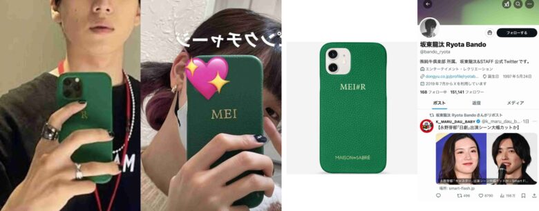連ドラが放送終了したタイミングで緑のケースと坂東に似たネイル、坂東が役で入れてたメッシュカラーを入れた写真を上げてる