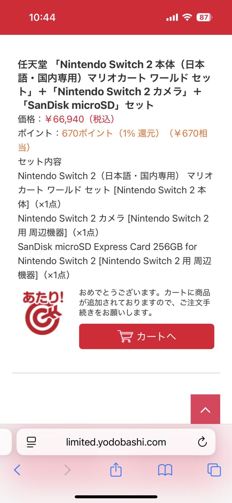 ワイ、ヨドバシとビック店頭と任天堂落ちたぞ