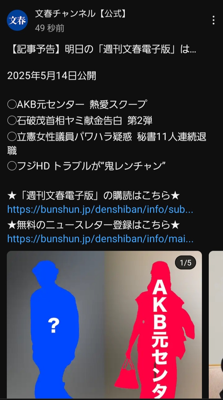 まゆゆだと後追いになるからそんなダサいこと文春がするかな