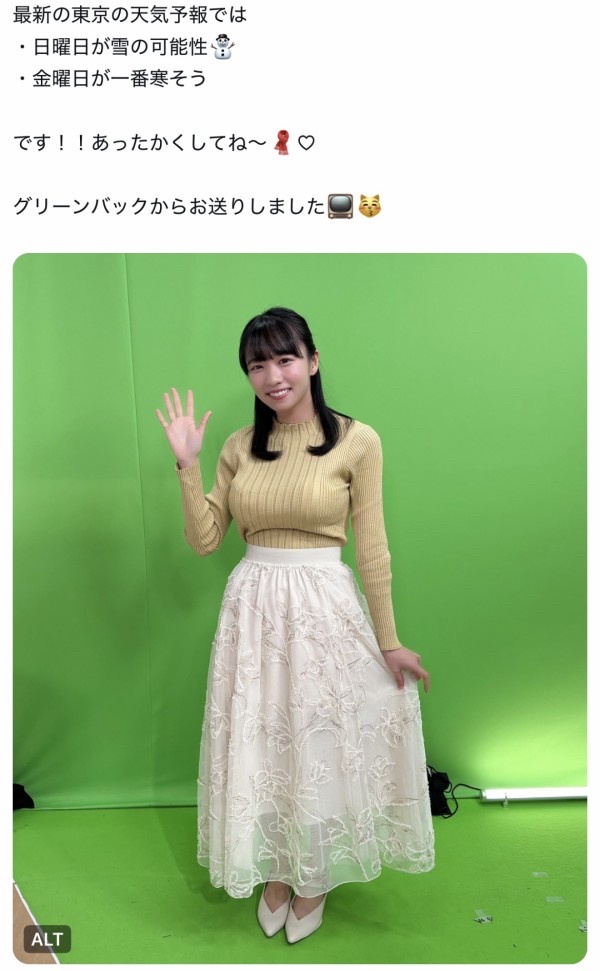 地味顔×爆乳という奇跡の天気お姉さんが話題に。「学生時代図書委員やってそう」「朝から金玉フル稼働」と絶賛の嵐。