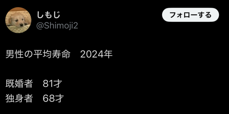 既婚者の方が早死ってデータ見た記憶あるんやが